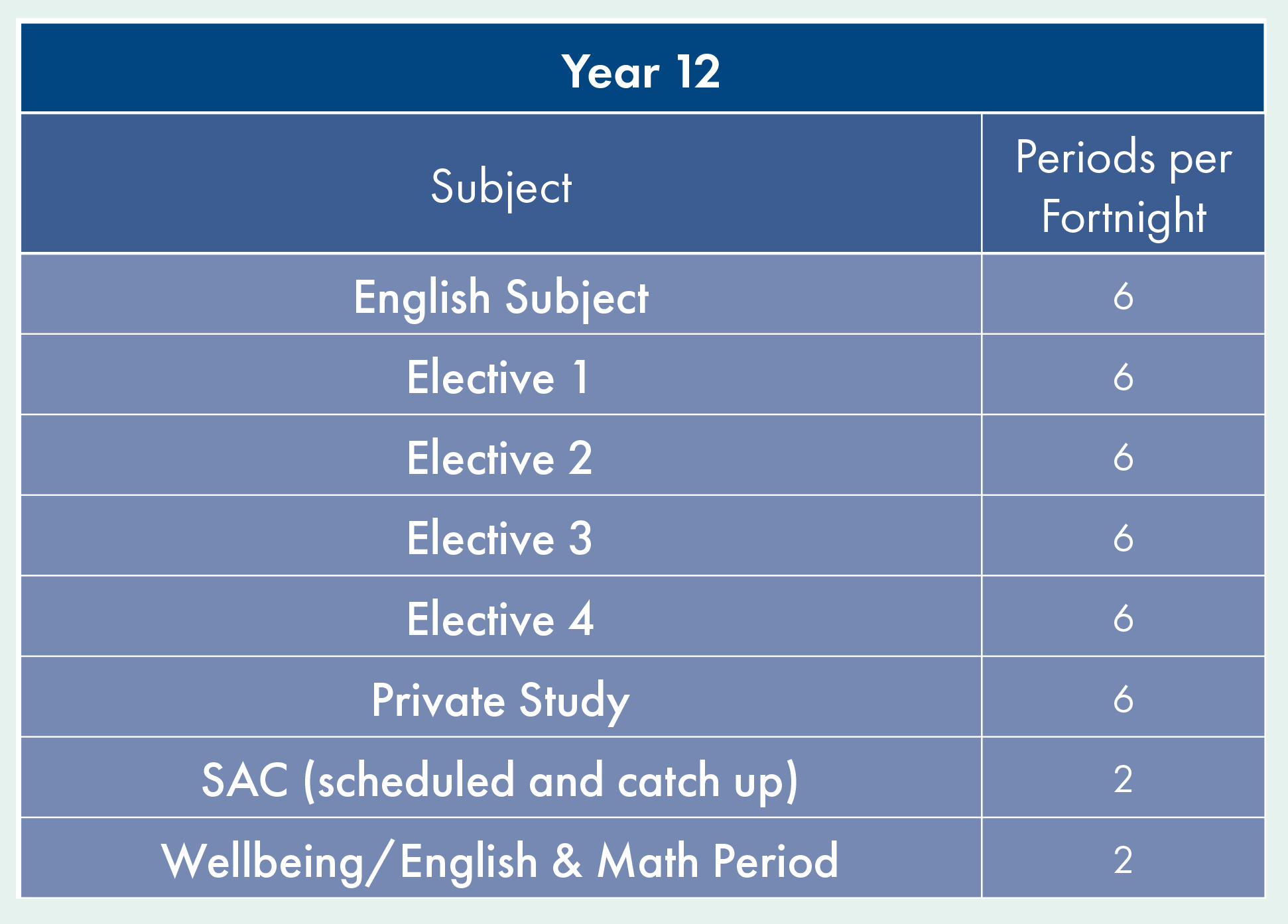 We operate a fortnightly timetable, with each period being 72 minutes long.